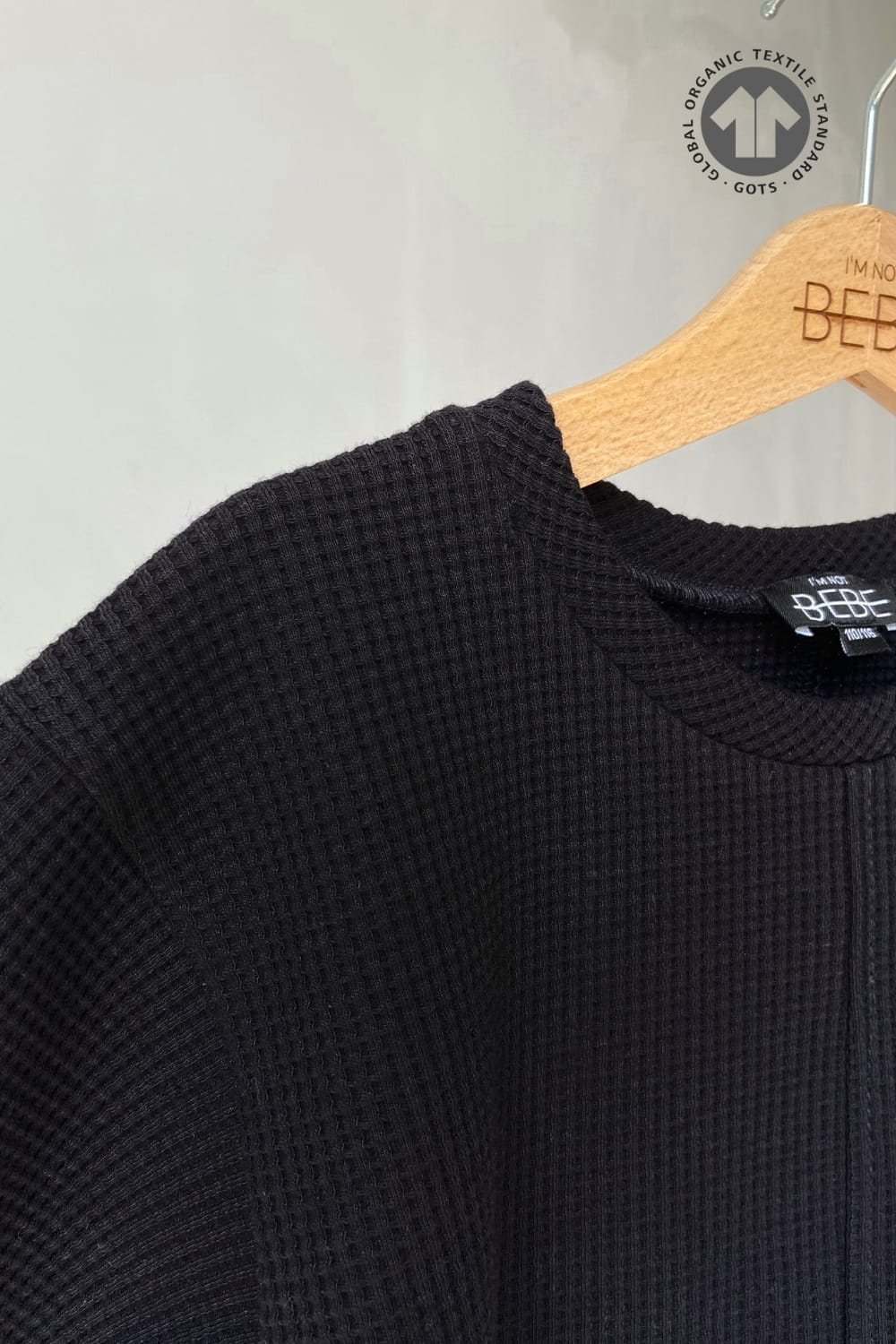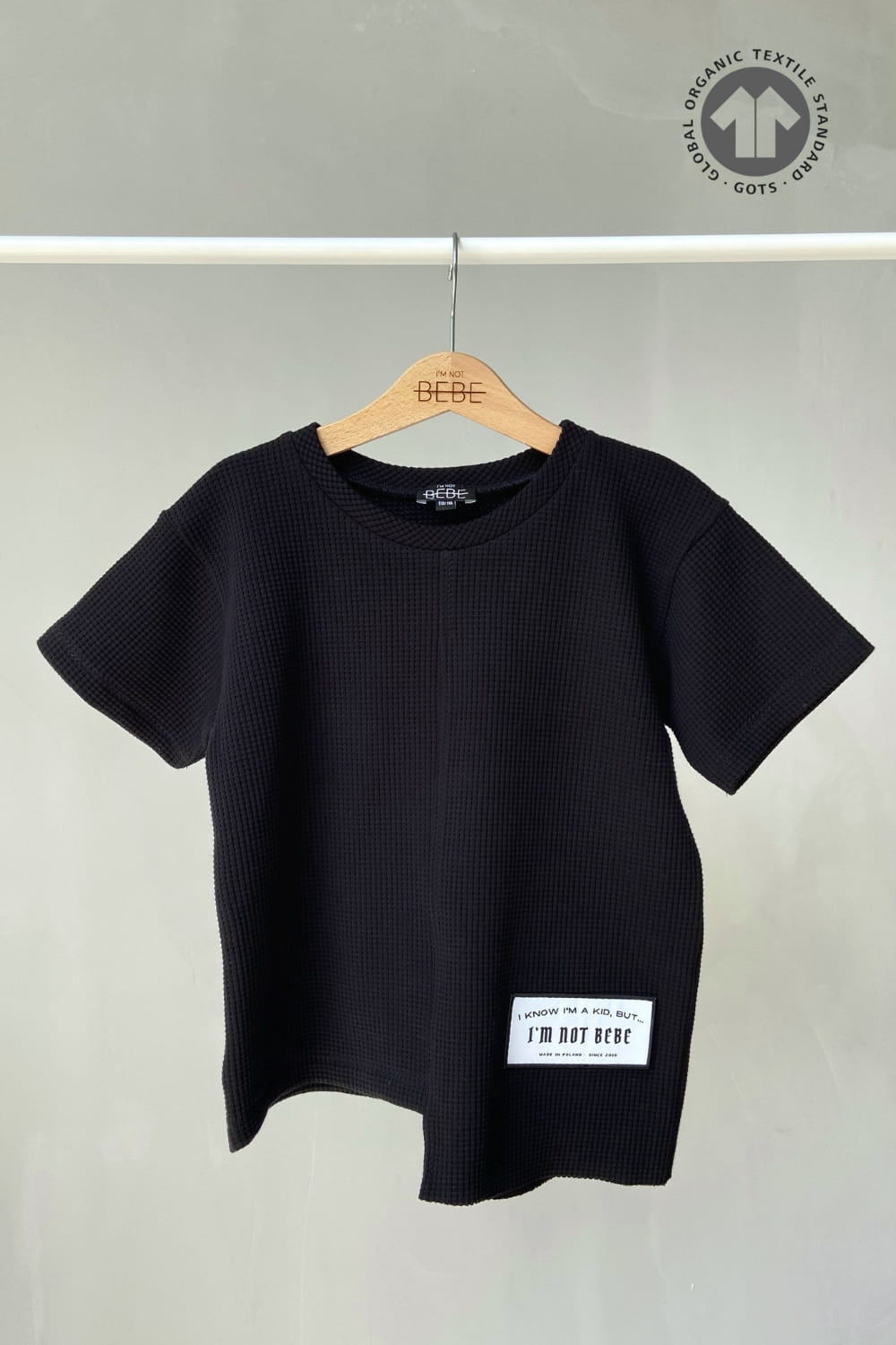 ASYMETRYCZNA KOSZULKA WAFEL - CZARNA