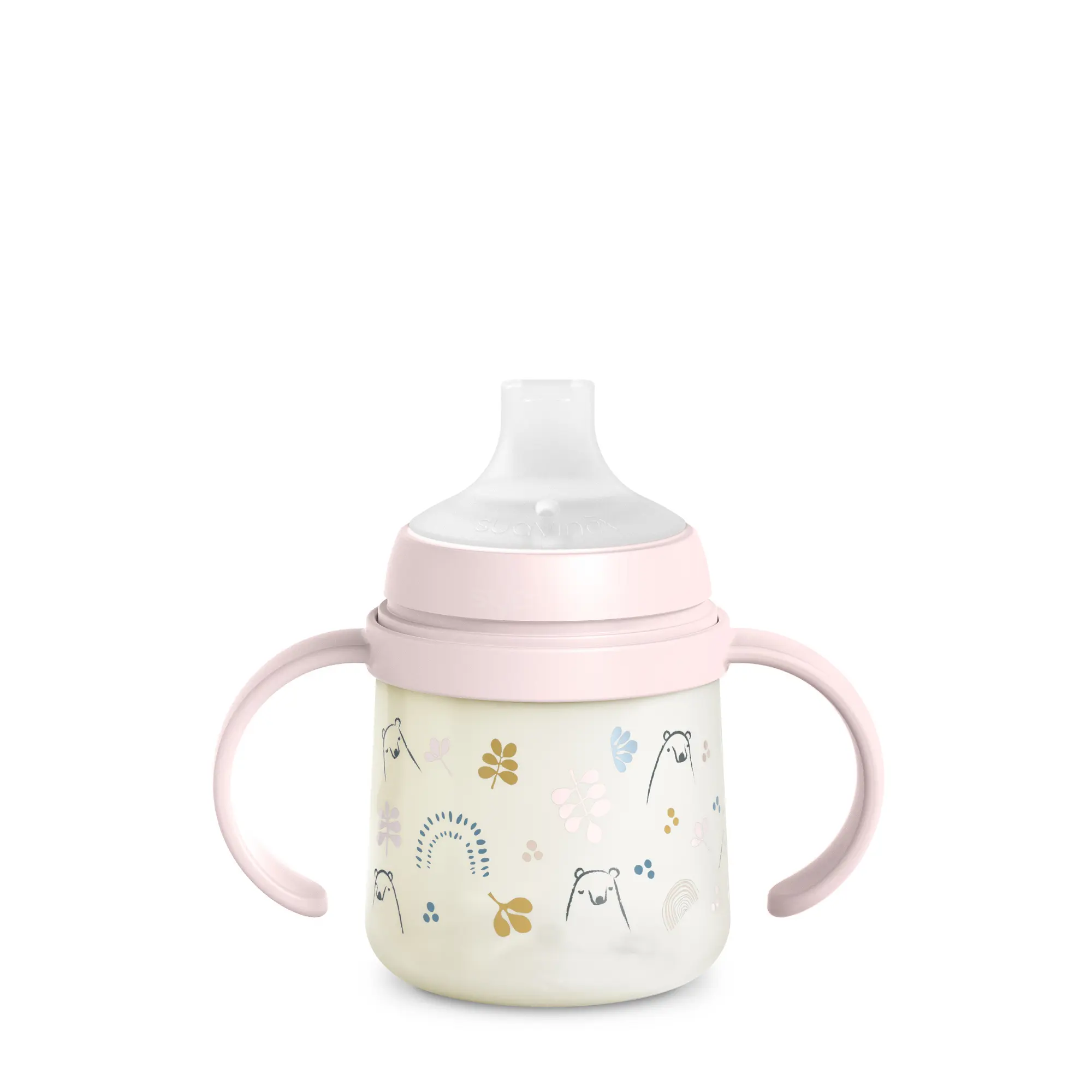 Pierwszy kubek niekapek z silikonowym ustnikiem 150 ml - różowy | Bears Suavinex